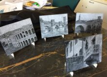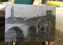 Questo tipo di lavorazione che sfrutta la precisione di un raggio laser ad elevata potenza ci permette di micro-incidere superficialmente molti materiali tra cui le pietre naturali.